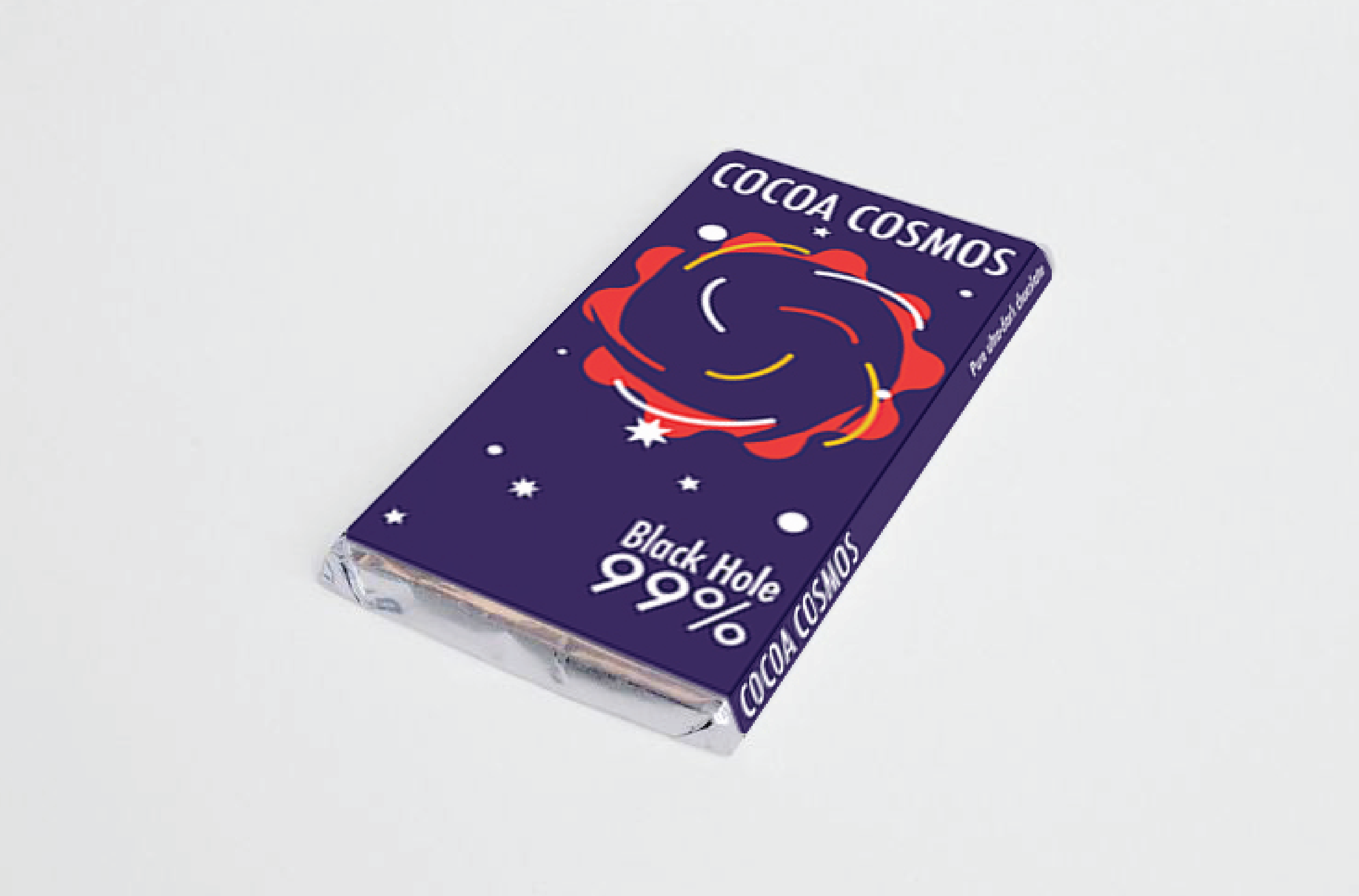 A chocolate brand created and designed with a space-travel theme. A set of four wrappers for four varieties, and a 16 piece box.